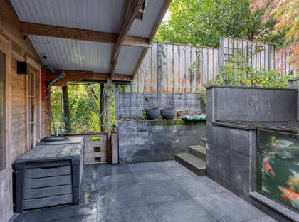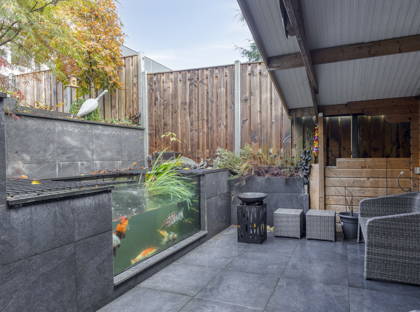 • Fraaie tuin met overkapping, tuinhuis en vijver