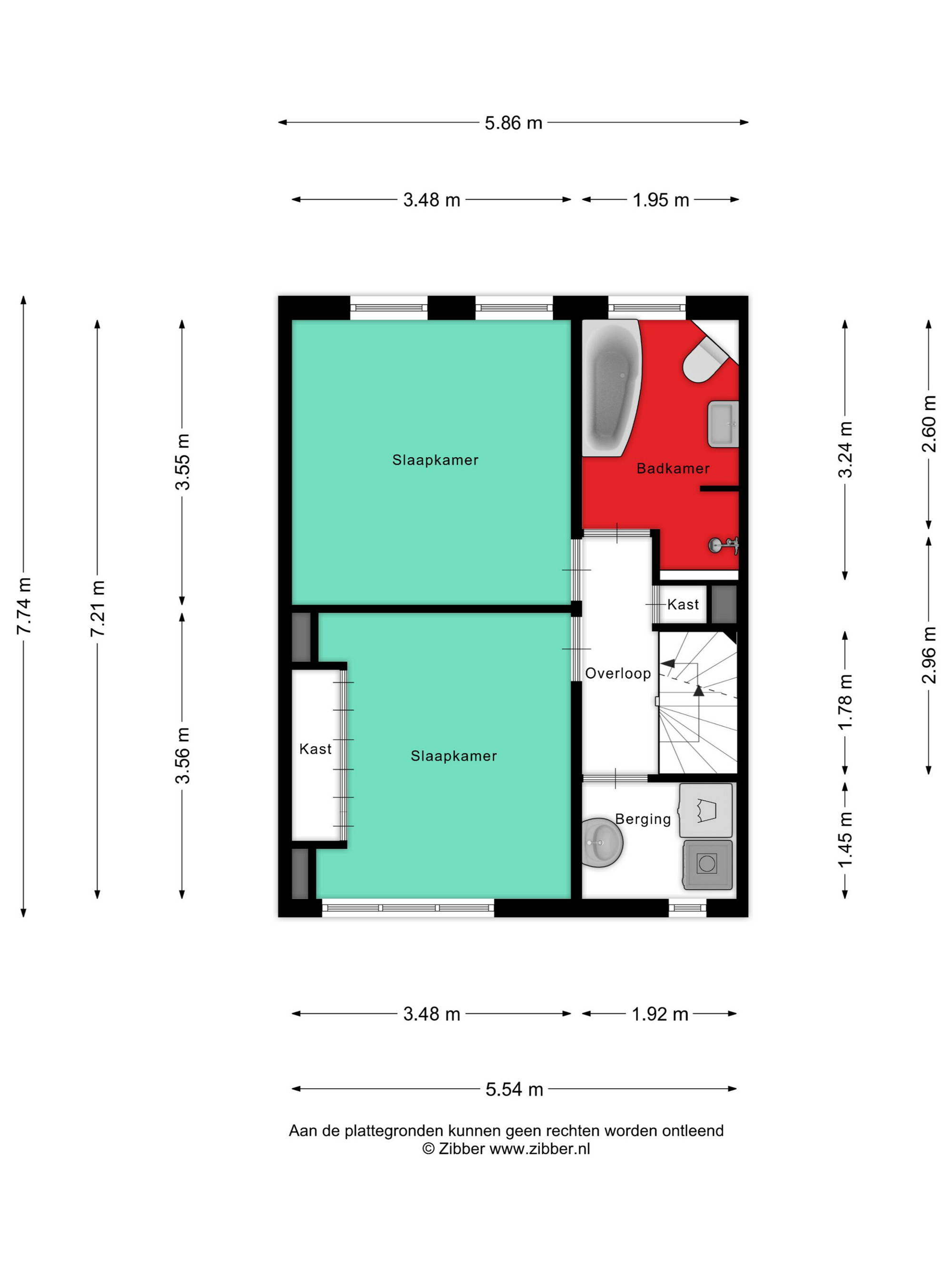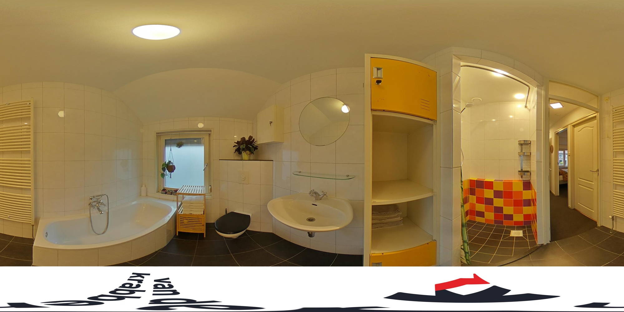 Op de eerste verdieping bevinden zich twee ruime slaapkamers. Beide kamers zijn voorzien van rolluiken. Daarnaast vind je op deze verdieping een handige berging met witgoedaansluitingen en een wasbak. De badkamer is ingericht met een ligbad, een aparte inloopdouche, een toilet, een wastafel én vloerverwarming voor extra comfort.