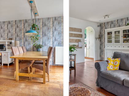 • Lichte, grote woonkamer met schuifdeuren naar de tuin