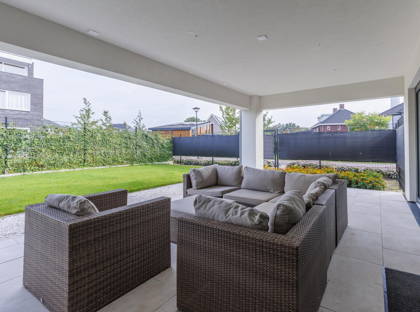 - Tuin met veel privacy en een grote overkapping aan het huis