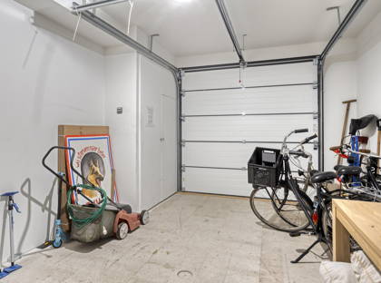 Naast de keuken is een hal die toegang biedt tot de ruime inpandige garage en tot een extra kamer aan de achterzijde van de woning. Deze ruimte is ideaal als werkkamer, speelruimte of extra slaapkamer.