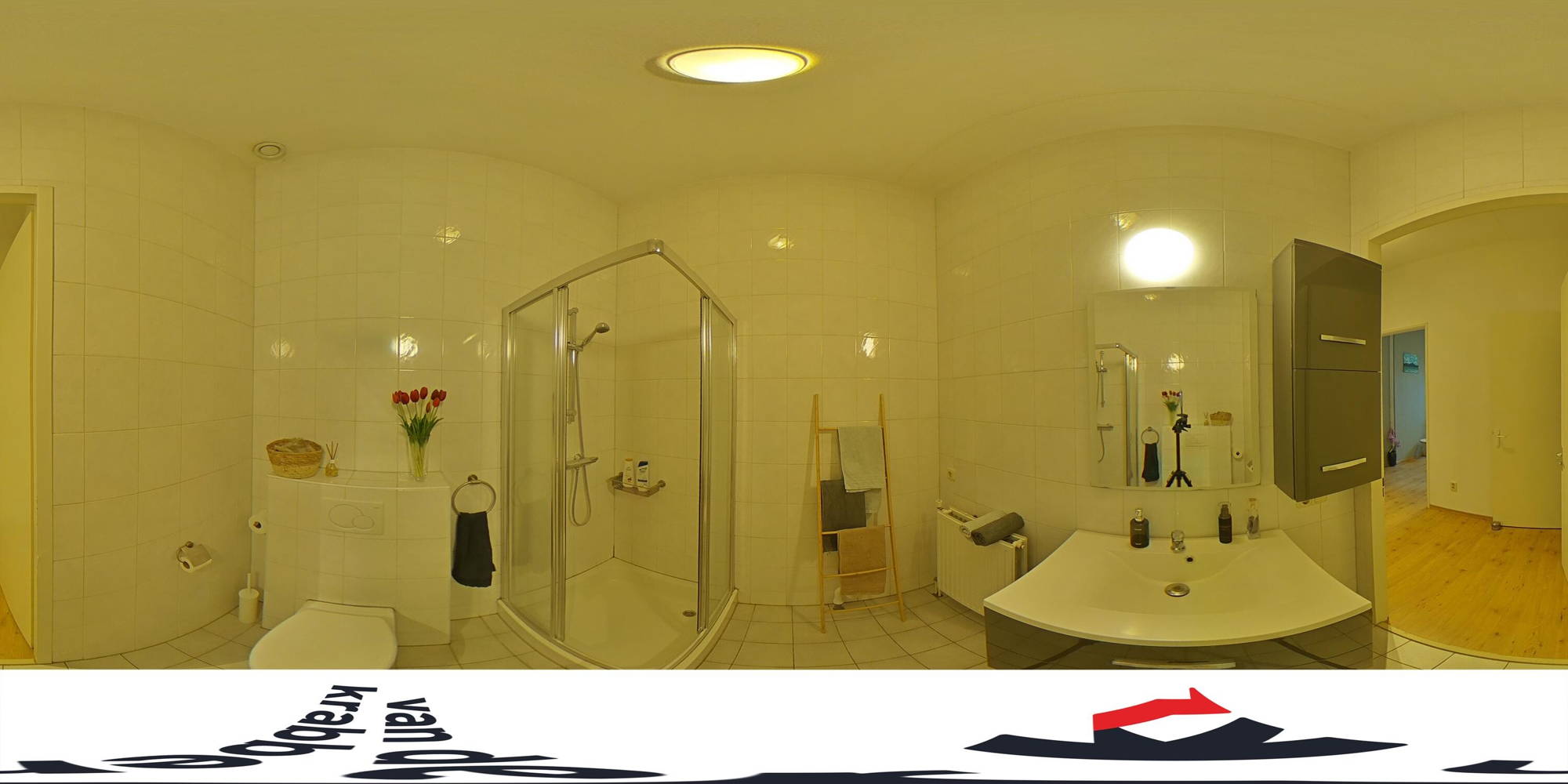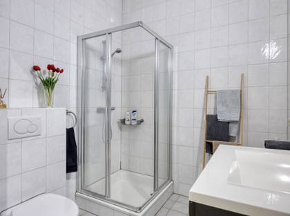 • Nette badkamer met douche, wastafelmeubel en toilet