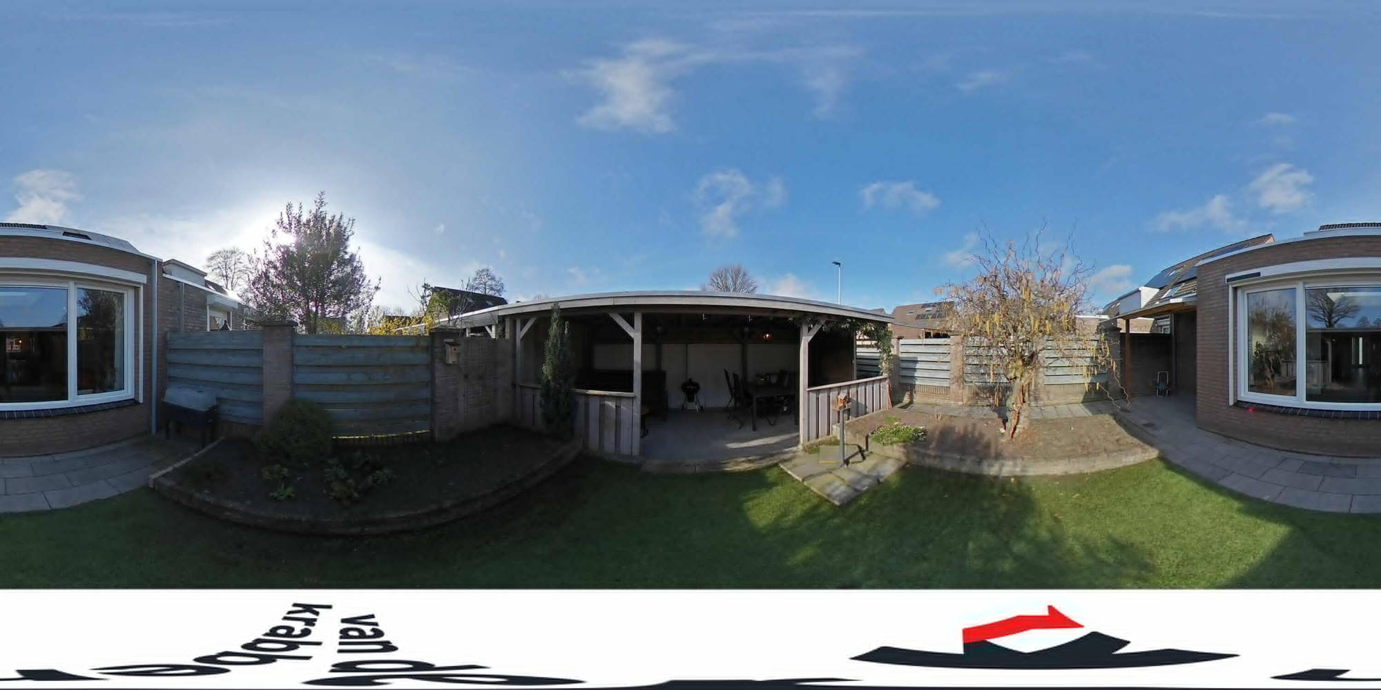 - Overkapping over de volle breedte van de tuin