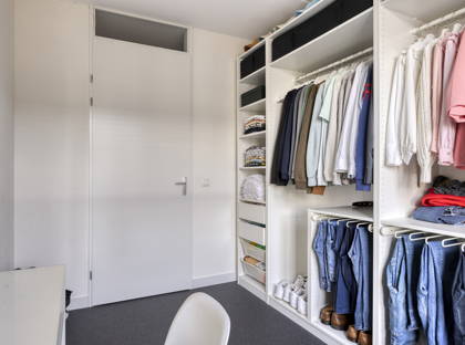 Verderop in de woonkamer is ruimte voor een grote eettafel en een gezellige zithoek. Onder de trap is bovendien een diepe kast, ideaal voor het opbergen van keukenvoorraad, schoonmaakartikelen, speelgoed en andere spullen.
