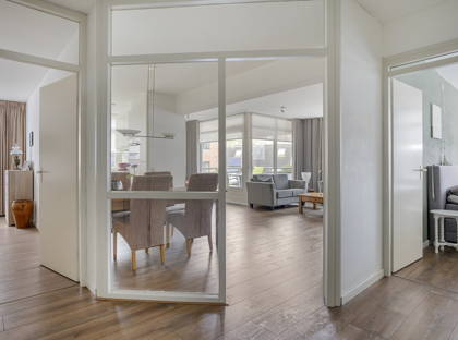 Je komt het complex binnen via de gezamenlijke entree met lift en trappenhuis. Eenmaal in het appartement valt direct de prettige lichtinval op. De hal vormt het centrale punt en geeft toegang tot vrijwel alle vertrekken.