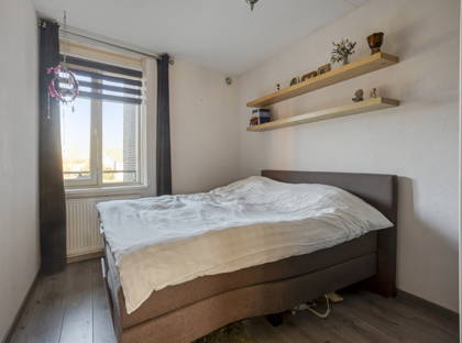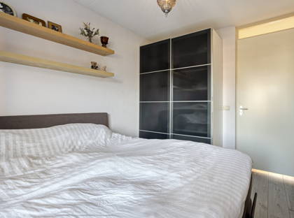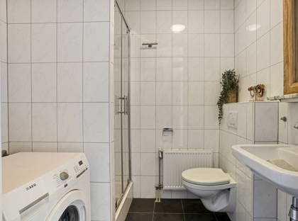 Deze woning ligt op de eerste verdieping van een klein appartementencomplex in een vriendelijke wijk. Je komt binnen in een centrale hal, die toegang biedt tot alle ruimtes van het appartement. Aan de linkerkant ligt een ruime slaapkamer, waar een riant tweepersoonsbed en een kast in past. De badkamer is compleet ingericht met een wastafel, toilet, douche en ruimte voor de wasmachine. De wasmachine blijft achter in het appartement.
