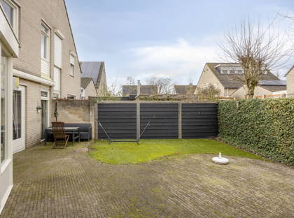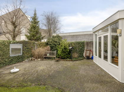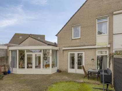 Aan de achterzijde van het huis is uitgebouwd, waarmee een speelse tuinkamer is gecreerd. Een extra woonkamer, tv-ruimte, speelkamer of thuiskantoor: de mogelijkheden voor deze kamer zijn eindeloos. Zowel in deze ruimte als in de woonkamer zorgen openslaande deuren voor toegang tot de ruime achtertuin. Deze is onderhoudsvriendelijk aangelegd, netjes onderhouden en biedt veel opties om het helemaal naar wens in te richten