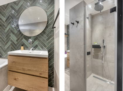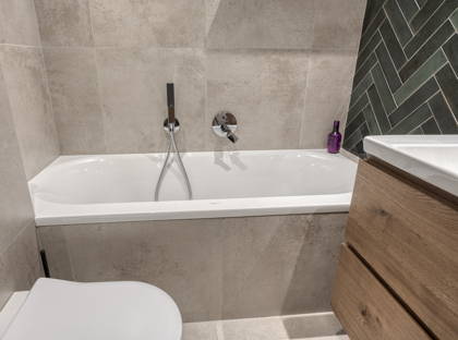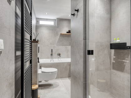 Op de eerste verdieping zijn twee ruime slaapkamers, beide heerlijk licht door de vele ramen. De slaapkamer aan de voorzijde is voorzien van een balkon. De badkamer is absoluut het pronkstuk van deze woning. Deze is nog geen jaar oud en zeer modern en sfeervol ingericht. In de badkamer vind je een riant ligbad, toilet, inloopregendouche en een wastafel met modern meubel. De badkamer is ook voorzien van vloerverwarming.