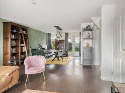 Je auto parkeer je op je eigen oprit, voor de garage. Via de entree, waar ook een ruim toilet is, heb je toegang tot de riante woonkamer. Aan de voorzijde van het huis is een gezellige zithoek gecreëerd en aan de achterzijde is ruimte voor een grote eettafel. Hier kun je lange avonden tafelen met familie en vrienden!