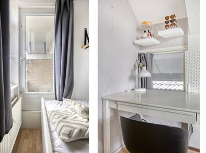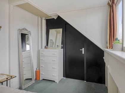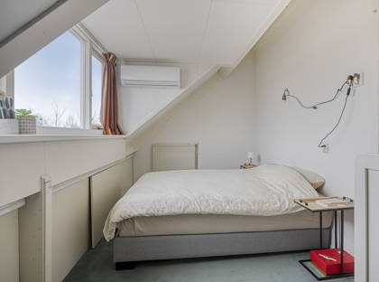 Neem je nog een trap naar boven, dan kom je uit op de zolder. Hier is een fraaie derde slaapkamer, die dankzij de grote dakkapel verrassend ruim is. Hier hangt ook airconditioning, wat voor verkoeling zorgt in de warme zomermaanden.