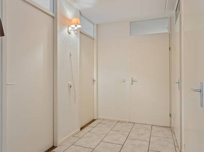 Bij binnenkomst in het appartement wordt je meteen verwelkomd door een ruime entree met een stijlvolle tegelvloer. Hier vind je ook de meterkast en de toegangsdeur naar het leefgedeelte.