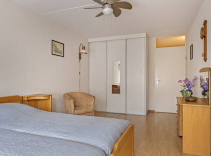 Het appartement heeft twee slaapkamers. De hoofdslaapkamer is bijzonder ruim en ligt tegen de loggia, waardoor er veel natuurlijk licht naar binnen schijnt. De tweede slaapkamer heeft ook veel lichtinval vanuit de loggia en is bijvoorbeeld ook ideaal als werkruimte of hobbyruimte.