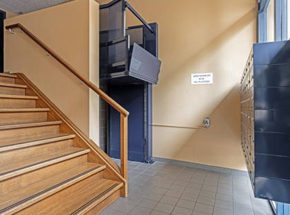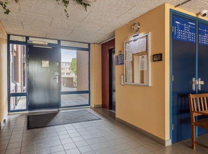 Via een met videofoon beveiligde toegang kom je in de centrale hal, waarna je met de lift of trap naar je appartement op de eerste verdieping kunt gaan.