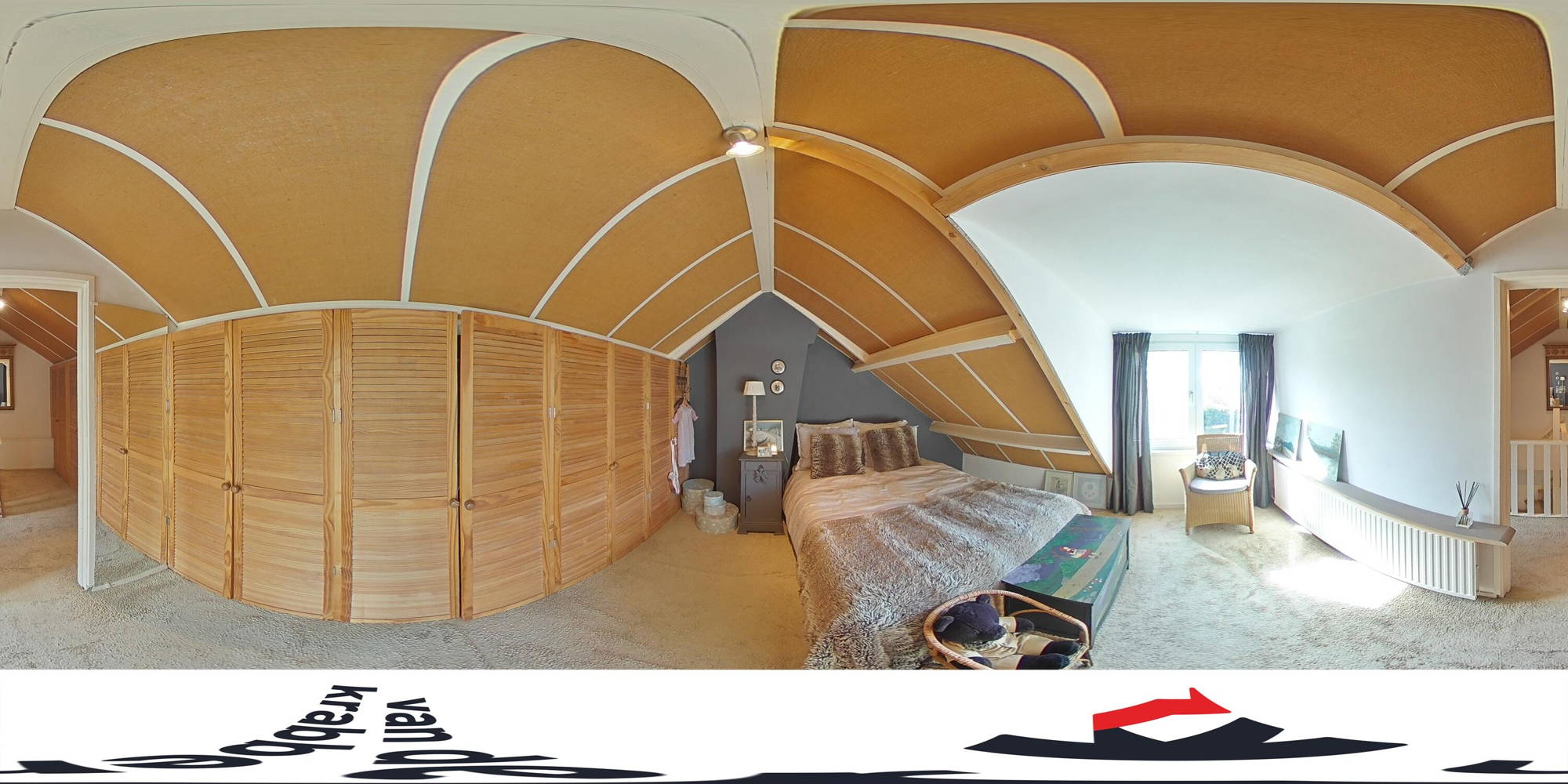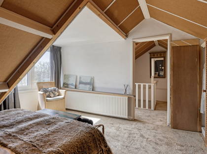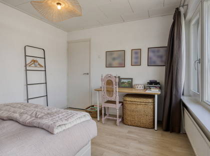De zolderverdieping is verrassend ruim. Op de voorzolder is extra bergruimte aanwezig dankzij de inbouwkasten. Daarachter bevindt zich een royale vierde kamer, eveneens met praktische inbouwkasten.