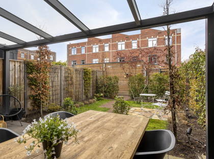 • Achtertuin van 52 m² op het oosten met overkapping (glazen dak), sproei-installatie en achterom
