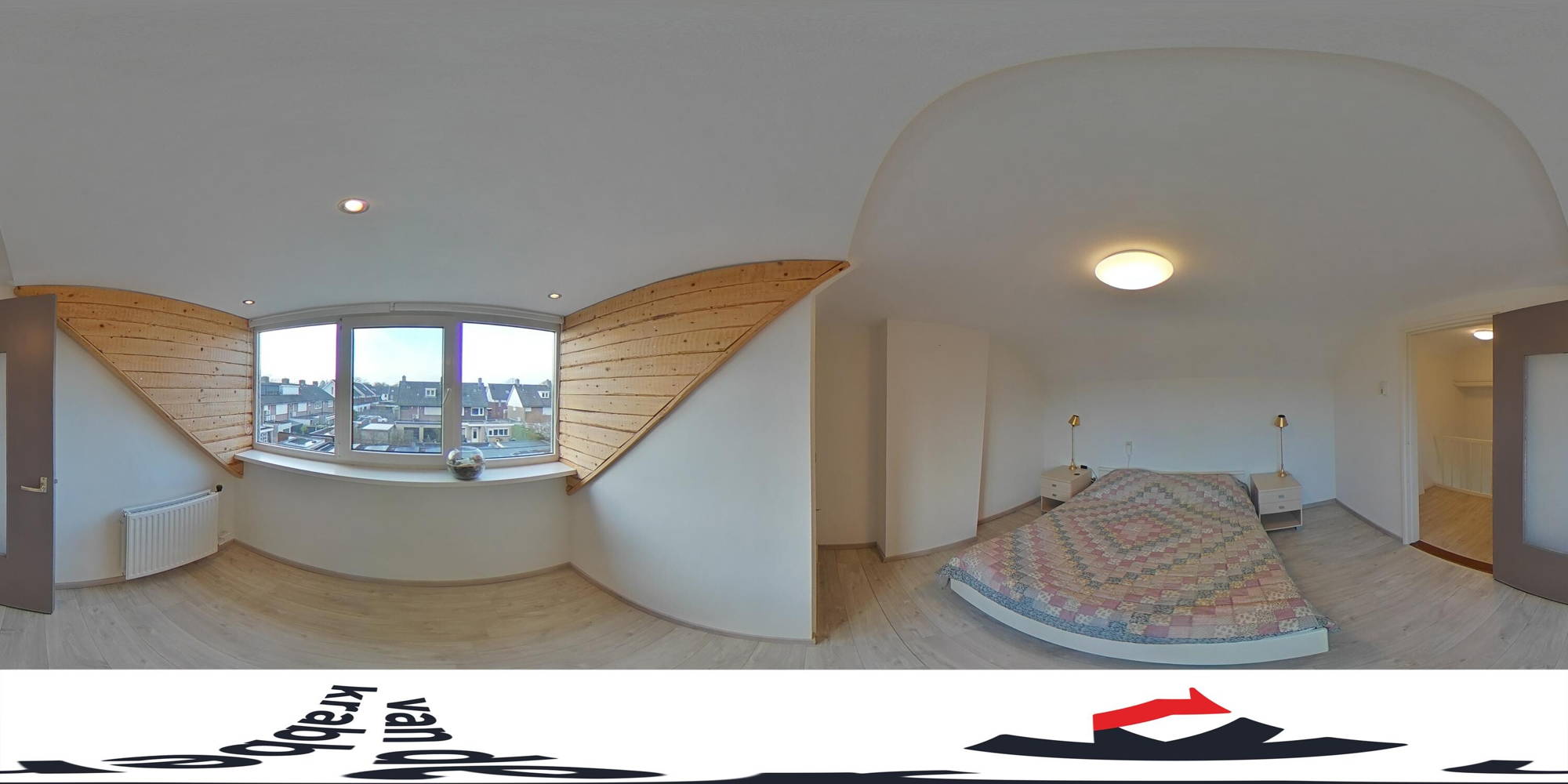 Op de eerste verdieping van deze woning zijn drie riante en lichte slaapkamers, dus ruimte voor het hele gezin. Twee van deze slaapkamers hebben inbouwkasten; aan opbergruimte heb je geen gebrek. De fraaie en riante badkamer is compleet uitgerust met een toilet, ligbad, wastafel, inloopregendouche en vloerverwarming. Op de zolder is nog een verrassend ruime vierde kamer: ideaal als extra slaap-, werk-, sport- of hobbykamer. Hier hangt ook een airco.