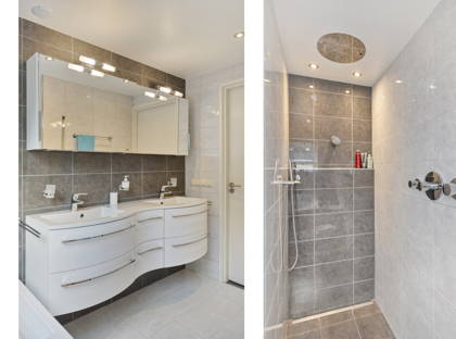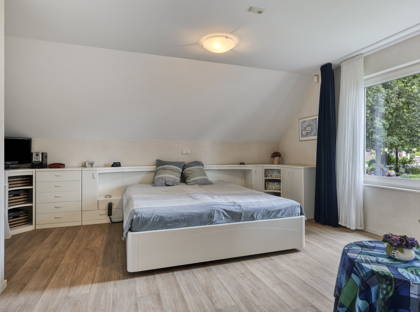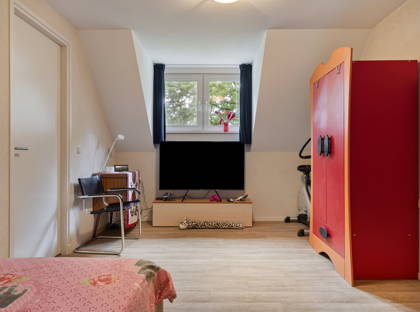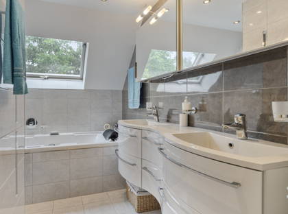 Op de eerste verdieping zijn drie ruime slaapkamers, een inloopkast, een riante badkamer en een apart toilet. Met een kleine ingreep kan een 4e slaapkamer gerealiseerd worden. De goed onderhouden badkamer is voorzien van een dubbele wastafel, een inloopdouche en een luxe whirlpool bad waarin je met twee personen helemaal tot rust kunt komen. Een spabeleving in je eigen huis! Met een vlizotrap heb je ook toegang tot de bergzolder, ideaal voor alle spullen die je niet dagelijks gebruikt. De gehele 1e verdieping, met uitzondering van de technische ruimte, is voorzien van vloerverwarming en vloerkoeling.