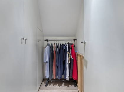 - In de gehele woning is volop bergruimte beschikbaar door op maat gemaakte kasten.