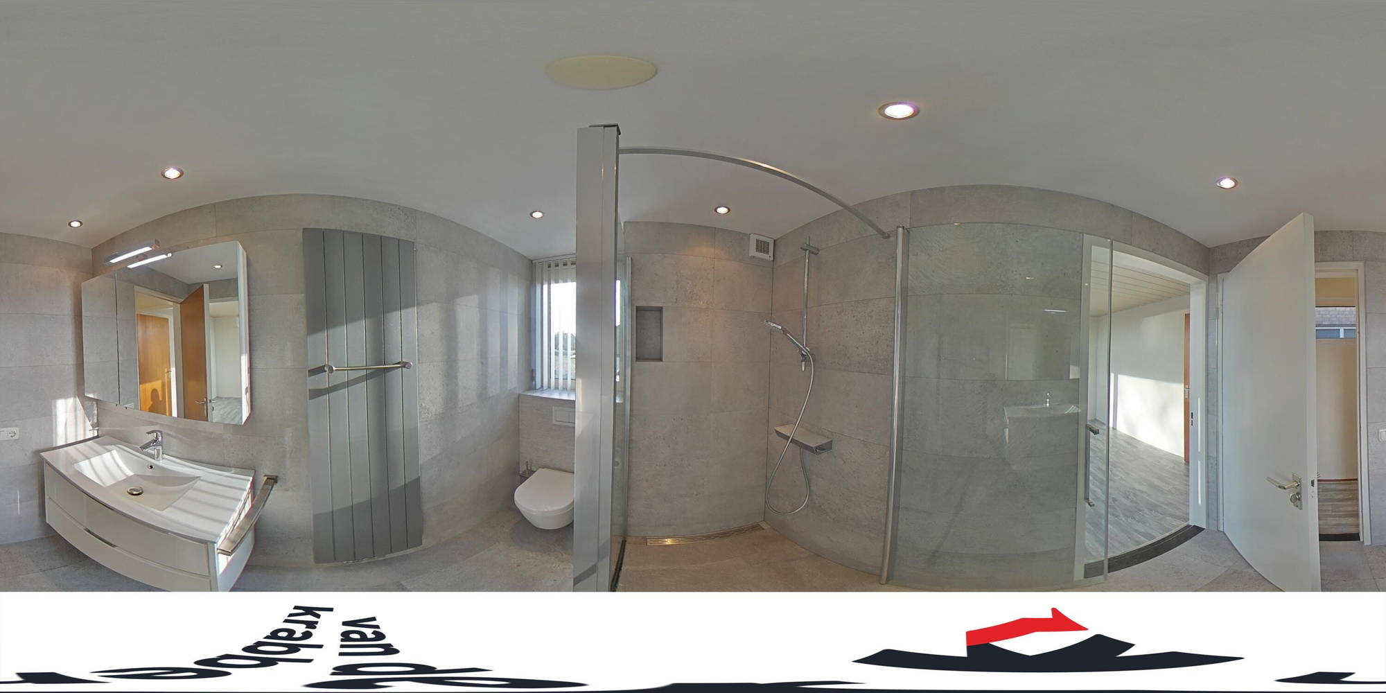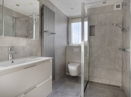 • Moderne badkamer met inloopdouche, toilet en wastafelmeubel