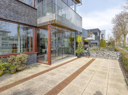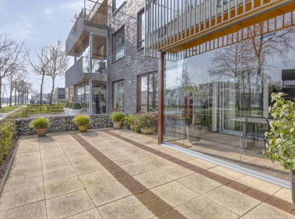 Buiten beschik je over een onderhoudsvriendelijke, betegelde tuin. En via de achterzijde van het complex heb je toegang tot een afgesloten parkeerterrein met eigen parkeerplek en een externe berging.