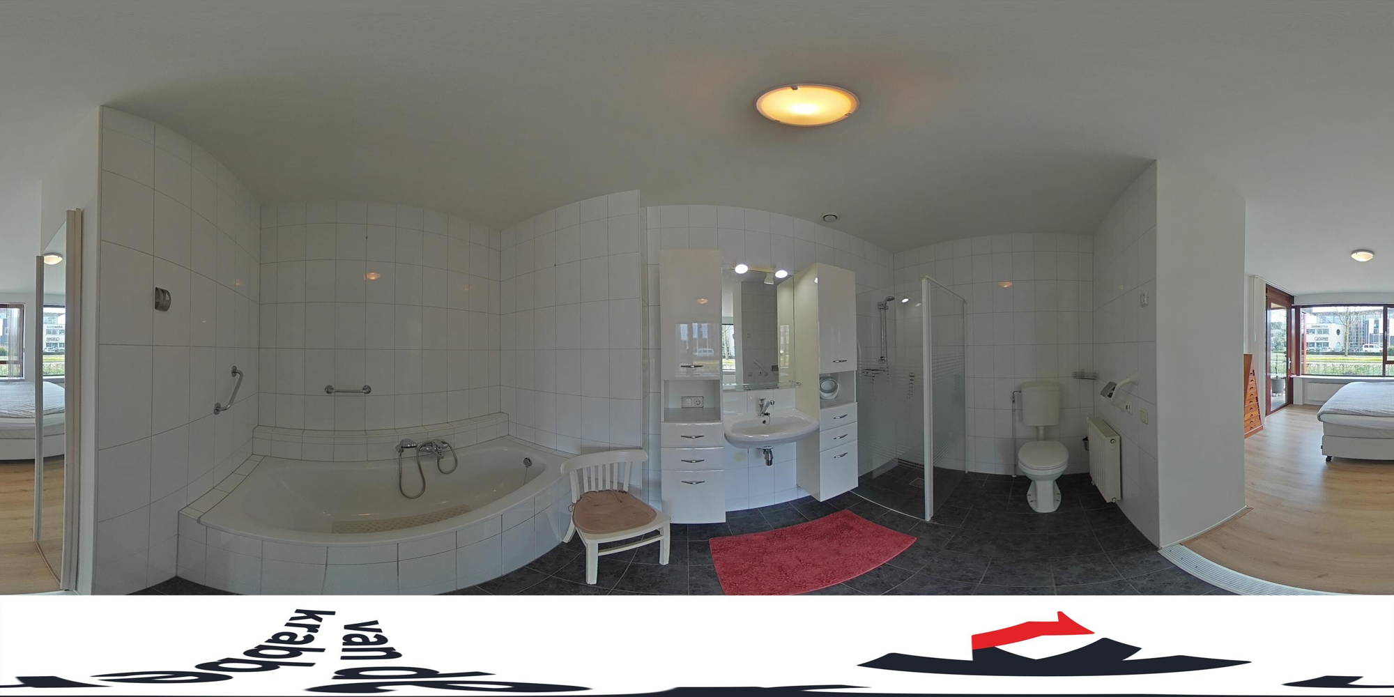 • Complete badkamer met ligbad, douche en toilet