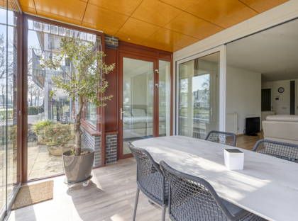 Bij binnenkomst valt meteen op hoe licht en ruim het appartement aanvoelt. De woonkamer is royaal opgezet en dankzij de grote schuifpui komt het daglicht hier volop binnen. Vanuit de woonkamer loop je zo de tuinkamer in: een heerlijke plek waar binnen en buiten samenkomen. Ideaal als extra zitruimte, werkplek of om gewoon lekker te ontspannen met uitzicht op het terras.
