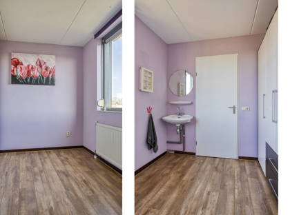 De tweede verdieping biedt nog eens twee slaapkamers, allebei voorzien van een eigen wastafel. Op de overloop is ruimte voor de wasmachine en droger, wat deze verdieping extra praktisch maakt.