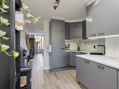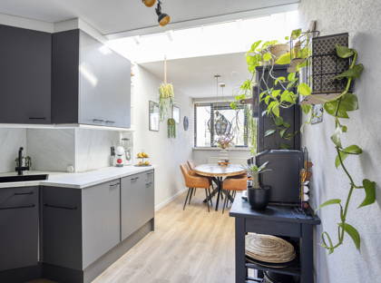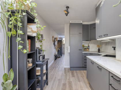 De woonkamer is royaal opgezet en heerlijk licht dankzij de grote raampartijen. Vanuit hier loop je zo de achtertuin in, waardoor binnen en buiten mooi in elkaar overlopen. De keuken is praktisch ingericht en voorzien van alle benodigde inbouwapparatuur, zoals een inductiekookplaat, afzuigkap, combimagnetron, koel-vriescombinatie en vaatwasser. Aansluitend bevindt zich de eetkamer: een gezellige plek om samen te eten, te werken of huiswerk te maken. Zowel de keuken als de eetkamer zijn extra licht dankzij de aanwezige lichtstraat.