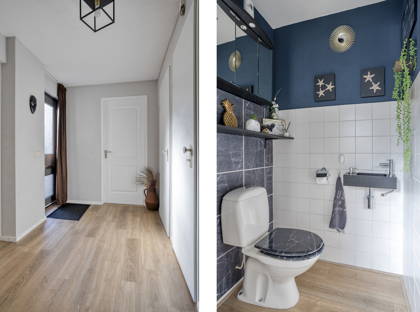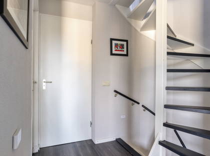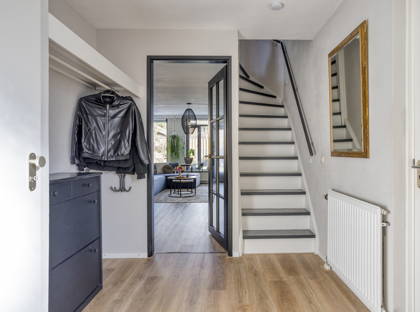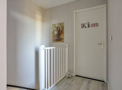 Bij binnenkomst stap je in een ruime hal met toegang tot het toilet, de trapopgang, de garage, het woongedeelte én een extra kamer op de begane grond. Dat laatste is meteen een groot pluspunt: deze ruimte is perfect te gebruiken als slaapkamer, thuiswerkplek, hobbyruimte of speelkamer.