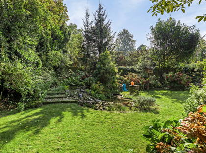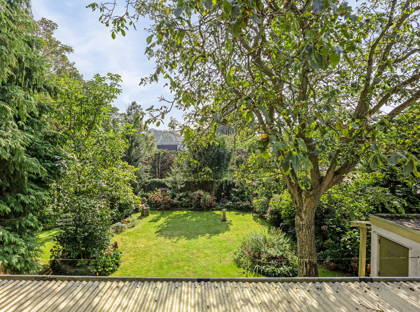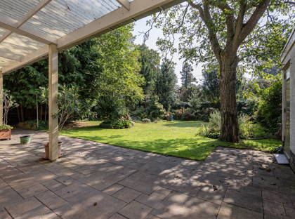 Maar het is de buitenruimte die deze woning echt speciaal maakt. De groene, fraai aangelegde achtertuin heeft een terras met overkapping, een prachtig gazon, bloemenperken en zelfs een vijver.
