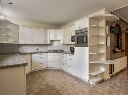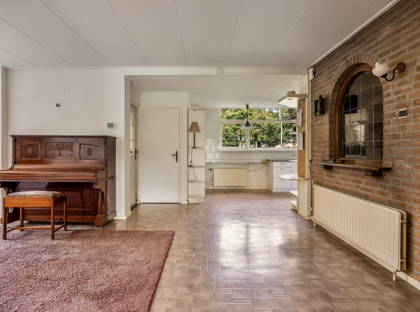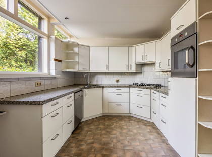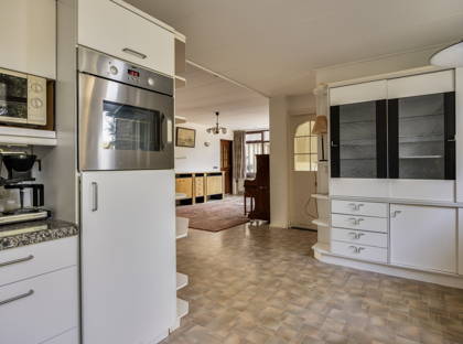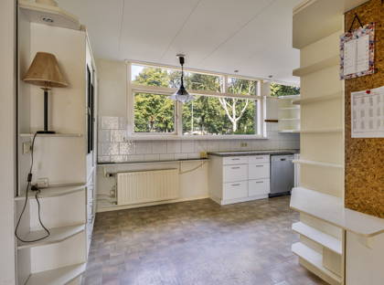 De lichte woonkamer, met schuifdeuren naar de tuin en een sfeervolle open haard, nodigt uit tot gezellig samenzijn. De ruime U-vormige keuken is voorzien van inbouwapparatuur. Het huis heeft twee grote kelders, met daarin een cv-combi-ketel. Een losse bijkeuken met keukenblokje en meterkast maakt het plaatje compleet. Tussen de woonkamer en keuken vind je ook nog een royale zit- eetkamer.