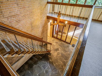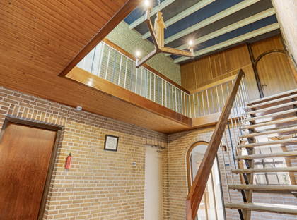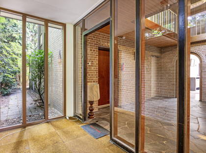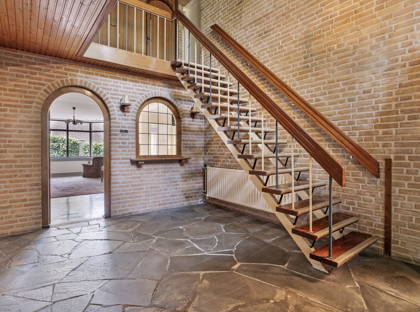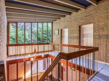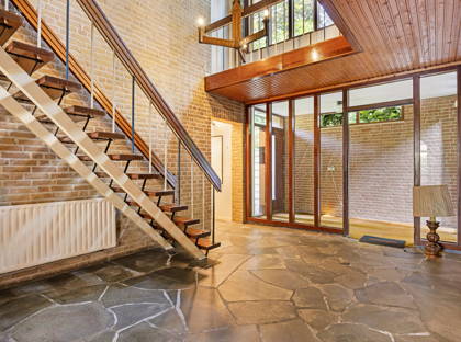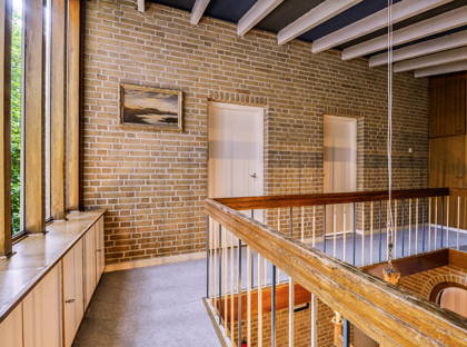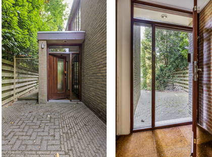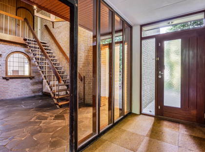 Wanneer je de oprit oprijdt, die ruimte biedt voor meerdere voertuigen, word je begroet door een imposante, ruime woning die tegenover het Bevrijdingspark en het busstation ligt. Eenmaal binnen, is er een ruime, hoge hal met een open trap naar de eerste verdieping.