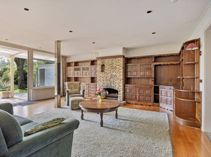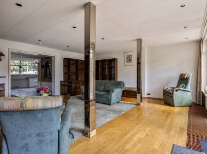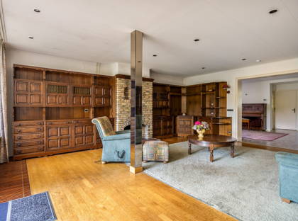 - Lichte woonkamer met schuifdeuren naar de tuin en open haard
