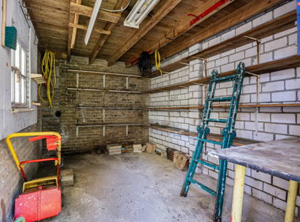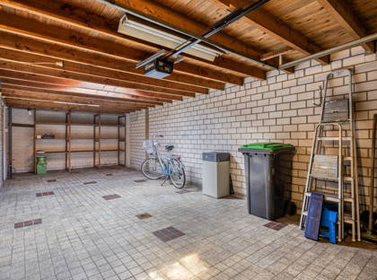 - Opberg ruimte aan de garage voor hobby en tuin gereedschap