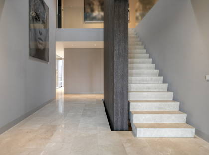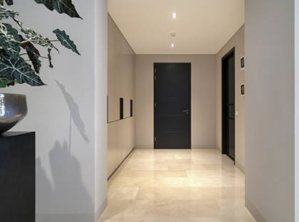 Vanaf de straat is het zicht op de woning met recht imposant te noemen. De fraaie architectuur wekt de nieuwsgierigheid over wat er achter de deur te vinden is. Eenmaal binnen is meteen duidelijk dat deze architectuur ook naar het interieur is doorgetrokken. Toparchitecten Eric Kuster en Pieter Laureys hebben hun creativiteit en krachten gebundeld in deze uitzonderlijke woning. De indrukwekkende entree heeft een hoog plafond en een stijlvolle en zwevende trap die naadloos overloopt in de prachtige tegelvloer. Vanuit de entree heb je toegang tot het ruime toilet, inclusief urinoir. Aan de voorkant van het huis ligt nog een extra kamer; ideaal als slaapkamer op de begane grond, werkruimte of speelkamer.