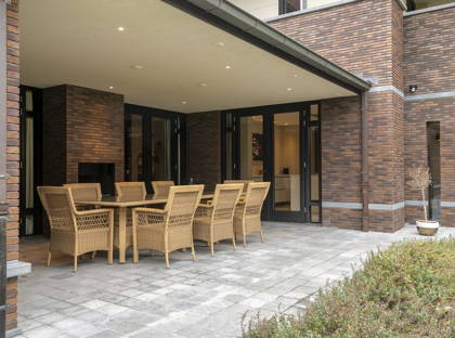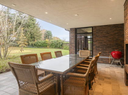 Zowel vanuit de woonkamer als vanuit de keuken heb je toegang tot de riante groene tuin. Je hebt vrij uitzicht over het grasveld en de volwassen bomen en planten. Onder een royaal overdekt terras kun je altijd droog genieten van een drankje of een diner. De tuin is onderhoudsvriendelijk aangelegd en biedt oneindig veel mogelijkheden om door het hele gezin gebruikt te worden. Zonnen, voetballen, genieten van een drankje, spelen: het kan hier allemaal!