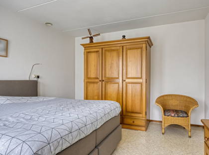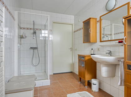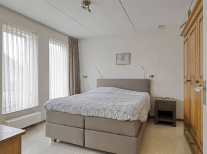 Dankzij de slaapkamer en badkamer op de begane grond, is dit een woning waar je nooit meer uit weg hoeft. De slaapkamer is riant en licht en biedt ruimte voor een tweepersoonsbed en een grote kast. De badkamer is uitgerust met een wastafel, douche en ligbad. Er is ook een separaat toilet in de hal. Achter de badkamer ligt nog een praktische bijkeuken, waar ook de aansluitingen voor de wasmachine en de droger zijn. De keuken, woonkamer, badkamer en een deel van de bijkeuken zijn voorzien van vloerverwarming.