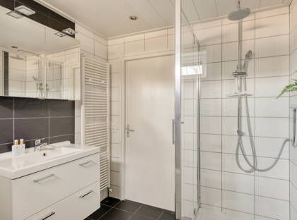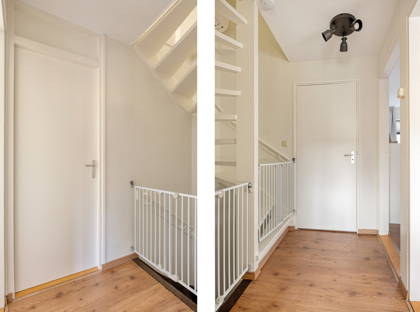 Op de bovenverdieping vind je drie ruime, lichte slaapkamers en een complete badkamer. De slaapkamers aan de achterzijde zijn voorzien van rolluiken. De badkamer is ingericht met een wastafel, toilet, douche en ligbad. De volgende trap brengt je naar de zolderverdieping, waar dankzij de dakkapel nog een verrassend ruime kamer is. Een ideale ruimte voor een extra slaapkamer, logeerkamer, werkruimte of hobbykamer. In het trapgat van de eerste verdieping naar de zolder hangt een airco, die zorgt voor verkoeling op de slaapkamers in de warme zomermaanden.