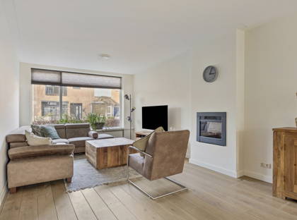 Dit huis ligt in een vriendelijke en rustige wijk, met voldoende parkeerplek voor de deur. Je komt binnen in een ruime entree, met een garderobe, toilet en de trap naar boven. Vervolgens loop je door de fraaie glas-in-looddeur naar de woonkamer, aan de voorzijde van het huis. De robuuste houten vloer en de elektrische haard geven deze ruimte een warme en knusse uitstraling. Door de ramen aan de voorzijde geniet je bovendien van veel natuurlijke lichtinval.