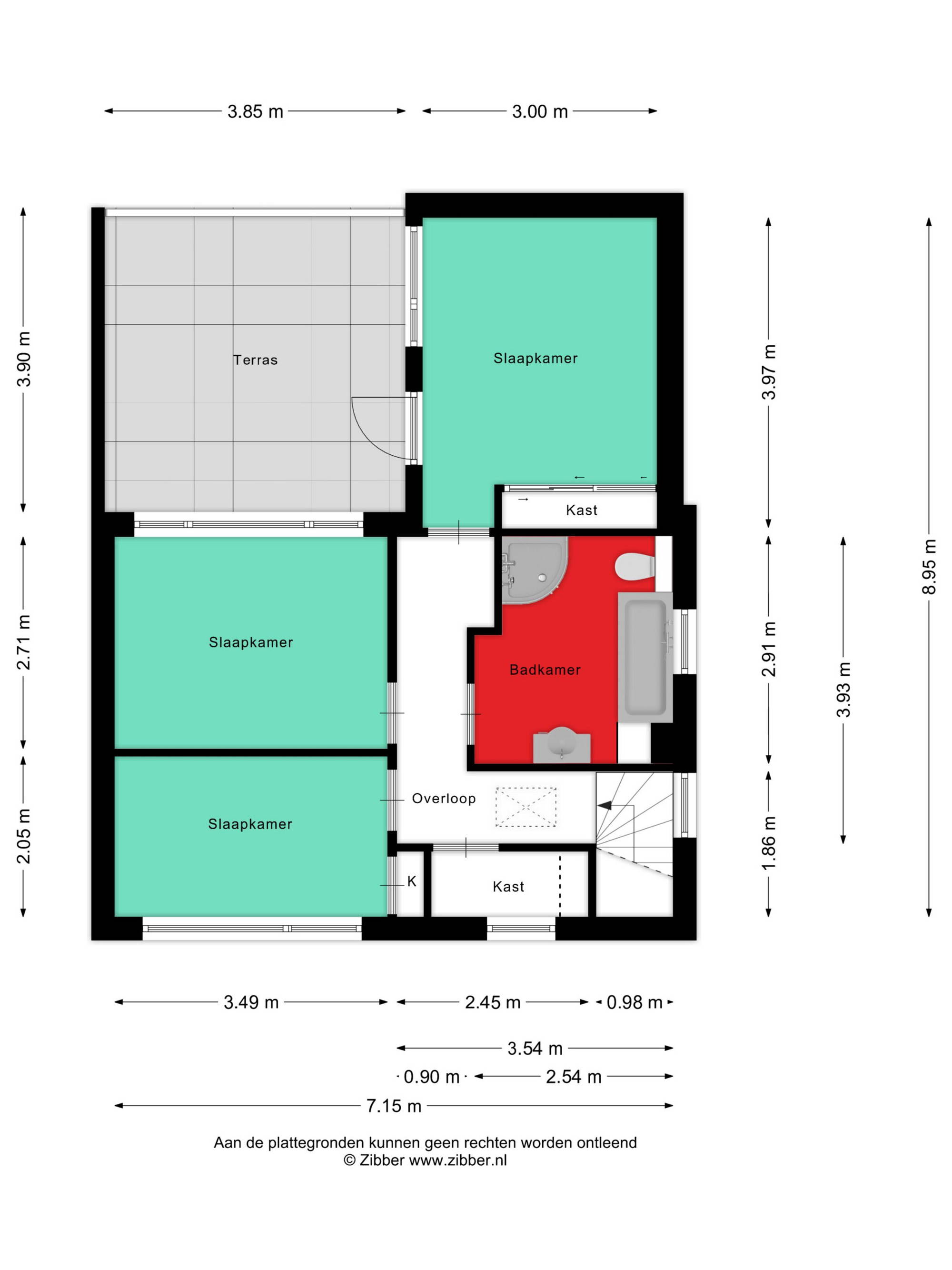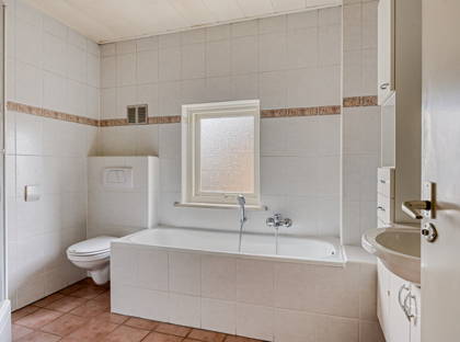 Op de eerste verdieping vind je drie slaapkamers van prettig formaat. Een van de slaapkamers heeft toegang tot het dakterras. De badkamer is voorzien van een ligbad, douche, wastafelmeubel en toilet. Wie wil moderniseren heeft hier volop mogelijkheden zonder ingewikkelde verbouwingen.
