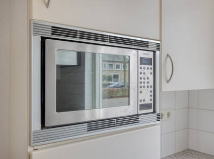 • Keuken met inductiekookplaat, afzuigkap, combimagnetron en koelkast