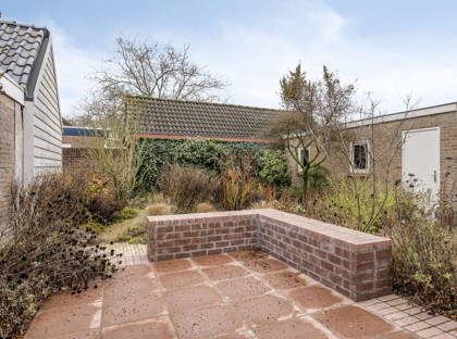 De achtertuin is voorzien van volwassen groen en een groot terras waar je lange zomeravonden kunt doorbrengen. Aan de zijkant van het perceel staat de garage met daaraan een ruime carport. Op de oprit kun je bovendien twee auto's kwijt.
