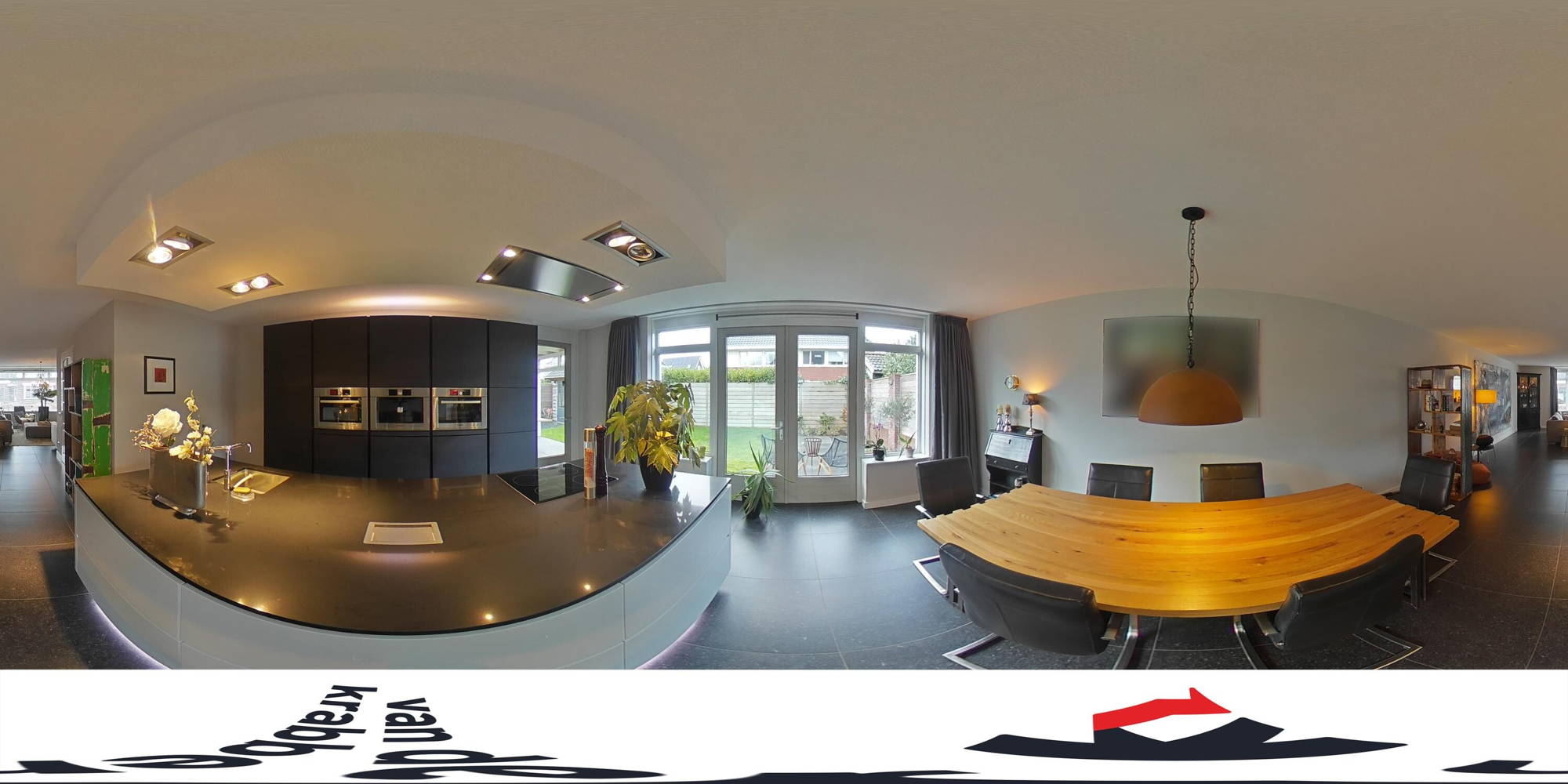 Aan de achterkant van de woning ligt de mooie eilandkeuken. Dankzij het combineren van verschillende materialen en kleuren heeft de keuken een hoogwaardige, kwalitatieve en moderne uitstraling. De keuken is voorzien van een inductiekookplaat, afzuigkap, magnetron, oven, koelkast, vriezer, vaatwasser, Quooker en ingebouwd koffiezetapparaat. Van alle moderne gemakken voorzien dus! Dankzij de grote eettafel is de keuken echt een plek voor het hele gezin om samen te komen.