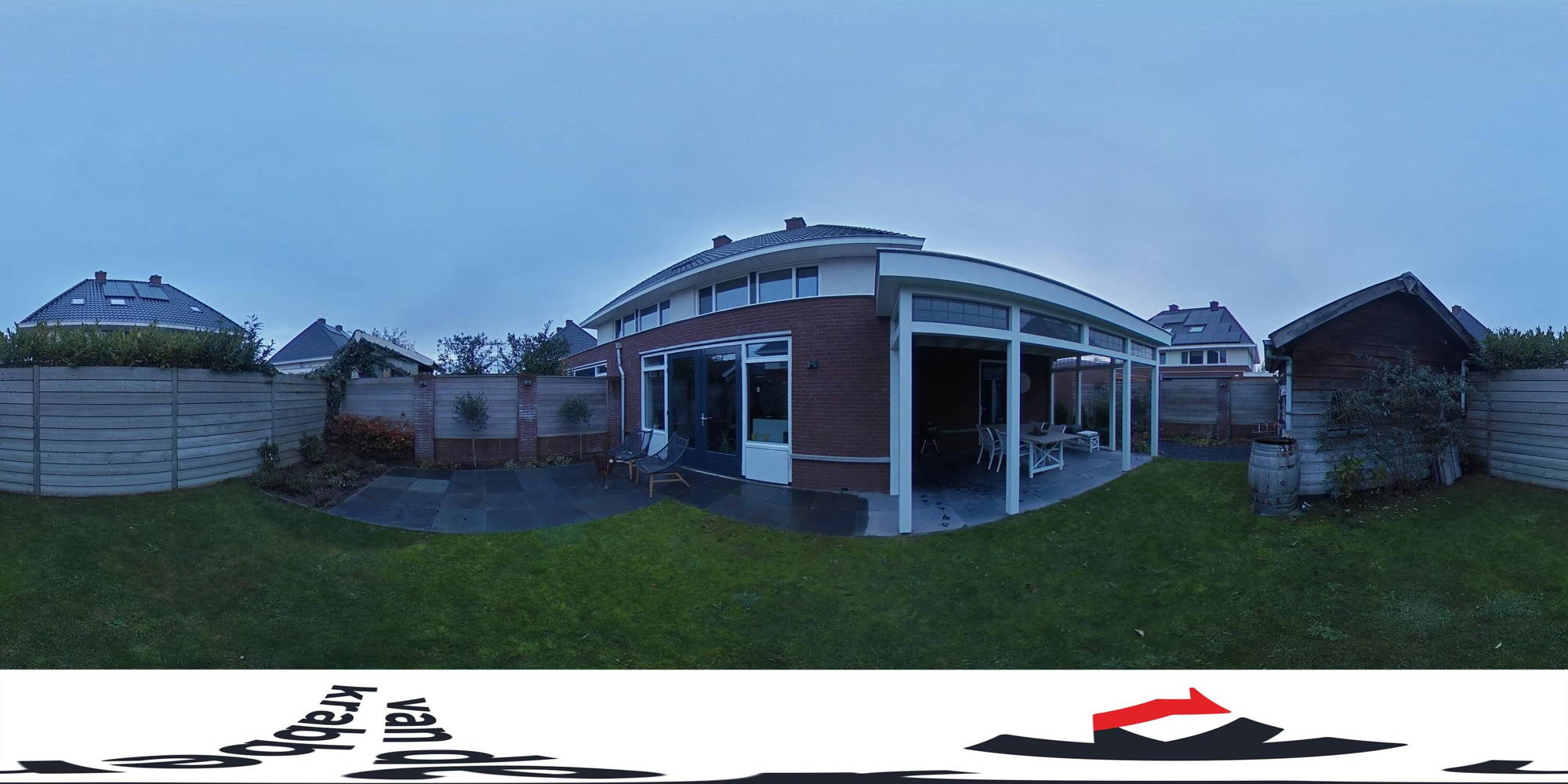 We sluiten deze digitale rondleiding af in de tuin, die bereikbaar is via de openslaande deuren en de loopdeur in de keuken. De tuin is onderhoudsvriendelijk aangelegd, met meerdere terrassen. Dankzij de grote overkapping kun je in deze tuin het hele jaar door genieten van een kopje koffie of een barbecue. Onder de overkapping zit ook de deur naar de berging naast het huis, met veel extra opbergruimte. In de tuin zelf staat ook nog een houten berging, dus aan opbergruimte geen gebrek in dit huis!