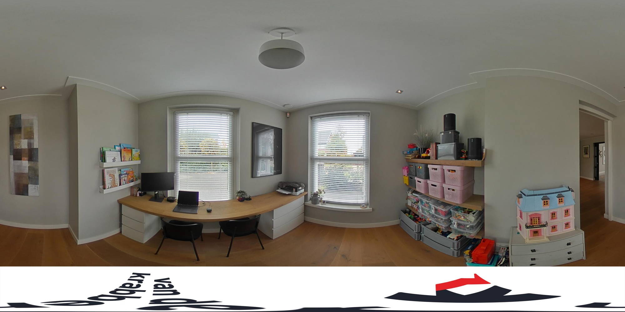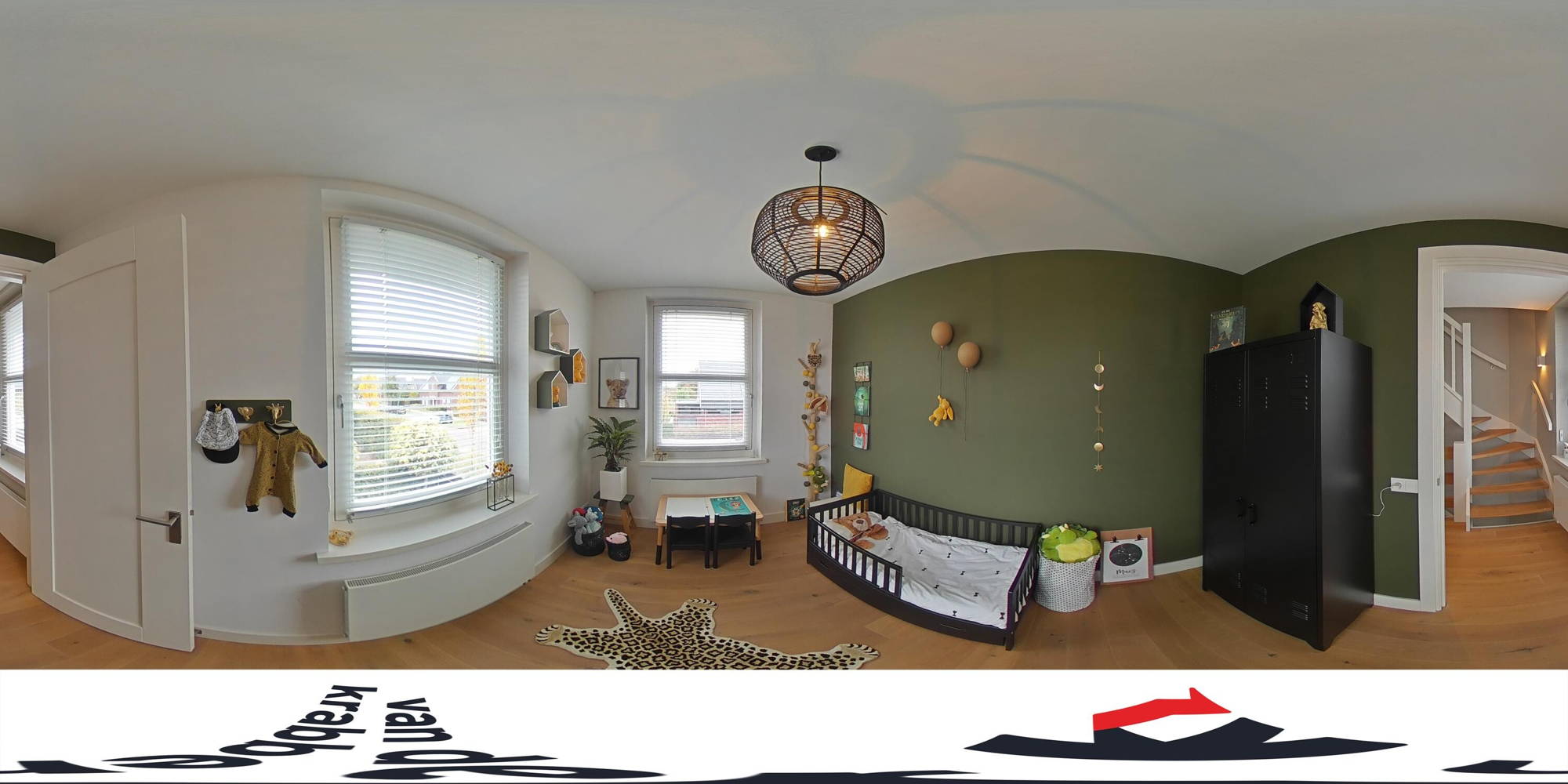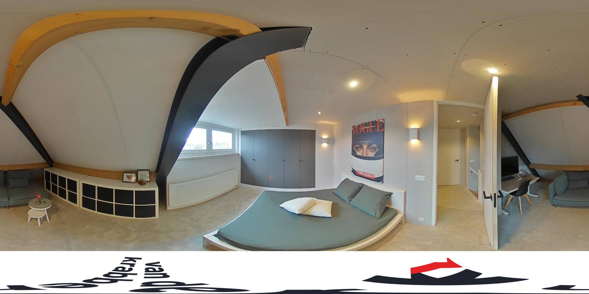 De tweede verdieping biedt een ruime slaapkamer met walk-in closet en volop bergruimte met mogelijkheden voor een tweede badkamer. Een ideale verdieping voor een oudere tiener, logees of een werkplek aan huis.