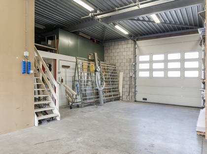 De eerste bedrijfshal heeft een oppervlakte van circa 150 m² en is toegankelijk via een roldeur met een hoogte van circa 3,00 meter en een breedte van 2,80 meter. De vrije hoogte van de hal bedraagt circa 3,00 meter tot aan het laagste punt van de staalbalk, waardoor deze ruimte geschikt is voor opslag, werkplaats of lichte productie.
