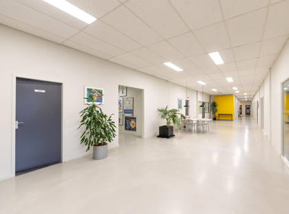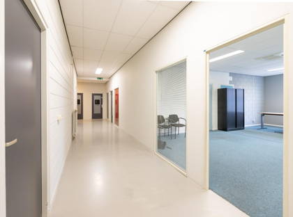 + Het bedrijfsverzamelgebouw heeft een centrale entree, waarnaar er een brede en lichte hal leidt naar de diverse kantoorruimtes.