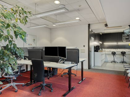Aan de achterzijde van de begane grond bevindt zich de kantoorruimte, welke is ingedeeld met meerdere werkplekken. Deze ruimte leent zich uitstekend voor een efficiënte kantoorindeling en biedt daarnaast de mogelijkheid om een kantine of pauzeruimte te realiseren. Het geheel is functioneel opgezet en praktisch in gebruik.