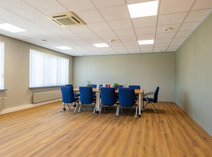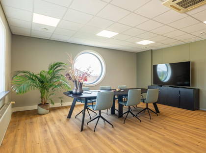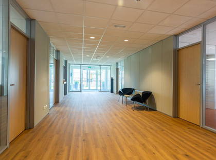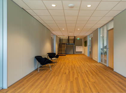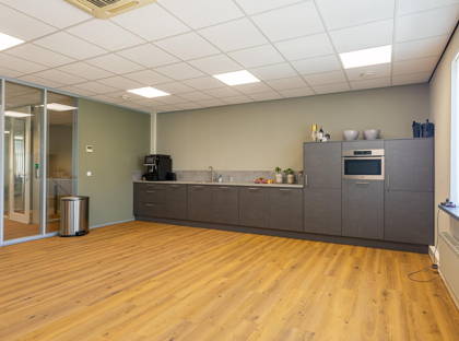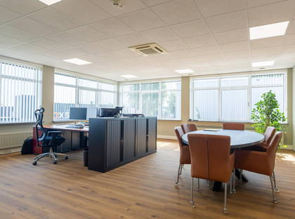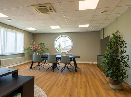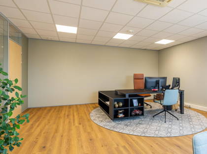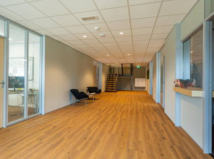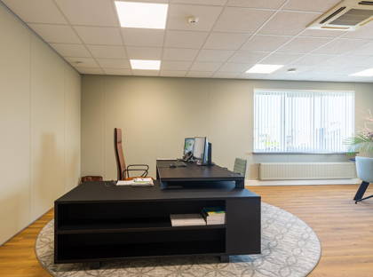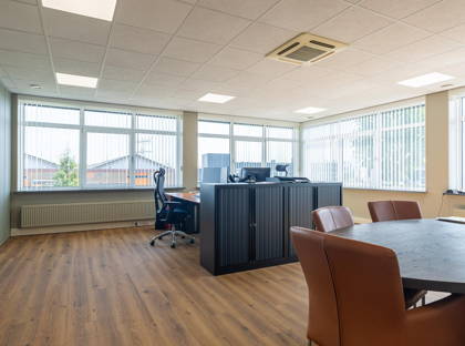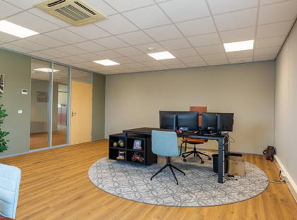 + Kantoorruimte: Voorzien van pvc-vloeren, systeemplafonds met led-panelen, verwarming/koeling middels radiatoren en airco, tevens zijn