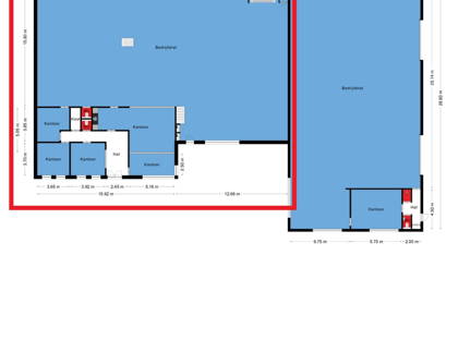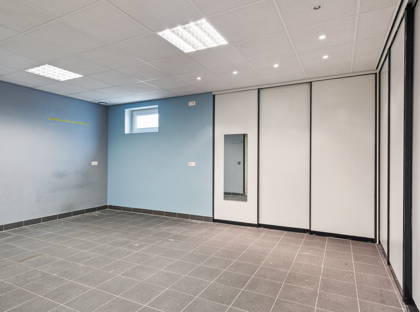 + Centrale entree in showroom en toegang tot twee kantoren en toiletruimte op begane grond. De toiletruimte bevat een wandtoilet en twee urinoirs.